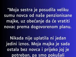 “Moja sestra je posudila od nase majke koja ima malenu penziju veliku svotu novca a onda…”