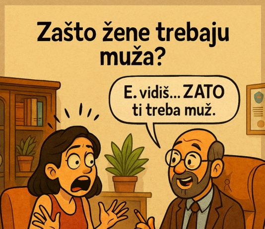 Jedna žena ode kod psihijatra i kaže:“Neću da se udajem. Imam diplomu, posao, auto. Sama sebi sam dovoljna.”Ali roditelji navalili: “Udaj se, bona, nećeš...