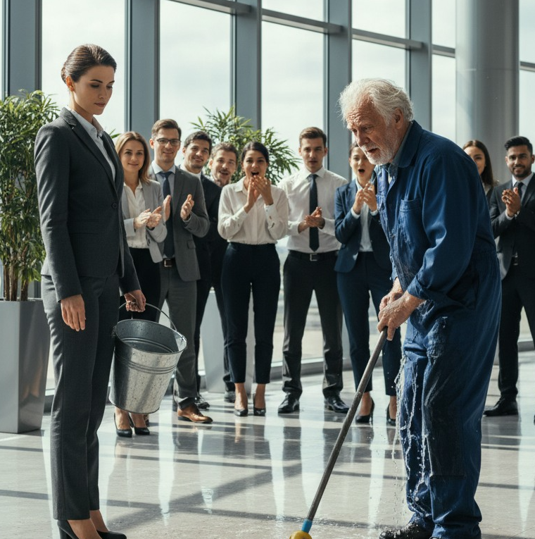 - Kada je ušao kroz servisni ulaz, Artur je prvi put video svoju firmu iz potpuno drugačije perspektive. Prešao je kroz hodnike gde su svi prolazili pored njega kao da je nevidljiv. Niko ga nije pozdravio, niko nije pokazivao nijednu gestu poštovanja. Bilo je to okruženje u kojem su se svi ponašali sa prezirom prema onima koji rade iza scene. Kao čistač, Artur je bio u prilici da čuje razgovore menadžera koji su se hvalili manipulacijama, podsmevali se kolegama i bahato ponašali prema svim „običnim ljudima“.