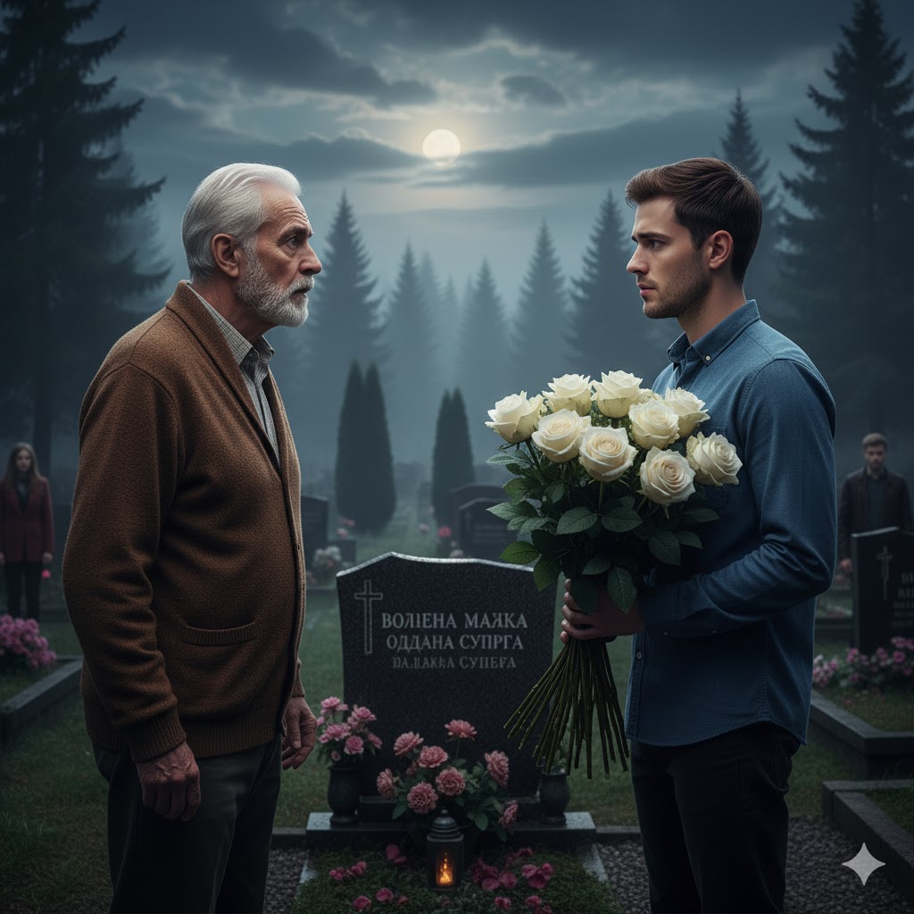 - Tih dana više nije mogao da misli ni na šta drugo. Neizvesnost ga je mučila toliko da je odlučio da sazna istinu. Jednog jutra ustao je pre zore i otišao na groblje ranije nego ikada. Sakrio se iza obližnjeg drveta i čekao. U tišini hladnog jutra, dok je vetar lagano nosio lišće po stazama, ugledao je mladića kako prilazi njenom grobu. Bio je visok, vitak, obučen u tamnu jaknu. U rukama je nosio buketić belih hrizantema i roze karanfila – isti onakav kakav je i on birao svake nedelje.
