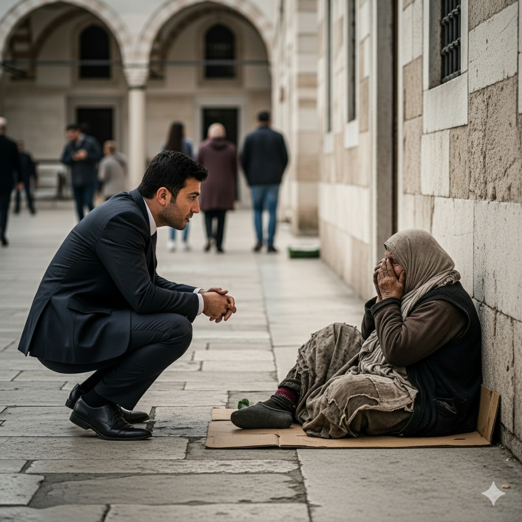 - Jednog dana, nakon molitve u džamiji, Tarik je primetio staricu među prosjacima. Oči koje su mu bile poznate, iako sada staro, umorno lice nije priznavalo nikog. Tarik je prišao, i tek tada je shvatio da je to njegova maćeha, Senada. Ona koja ga je izbacila iz svog života sada je bila senka žene koju je poznavao. Senada je bila siromašna, sama, bez ikoga, i sve što je imala bila je ta prljava čaša u kojoj je molila za pomoć.