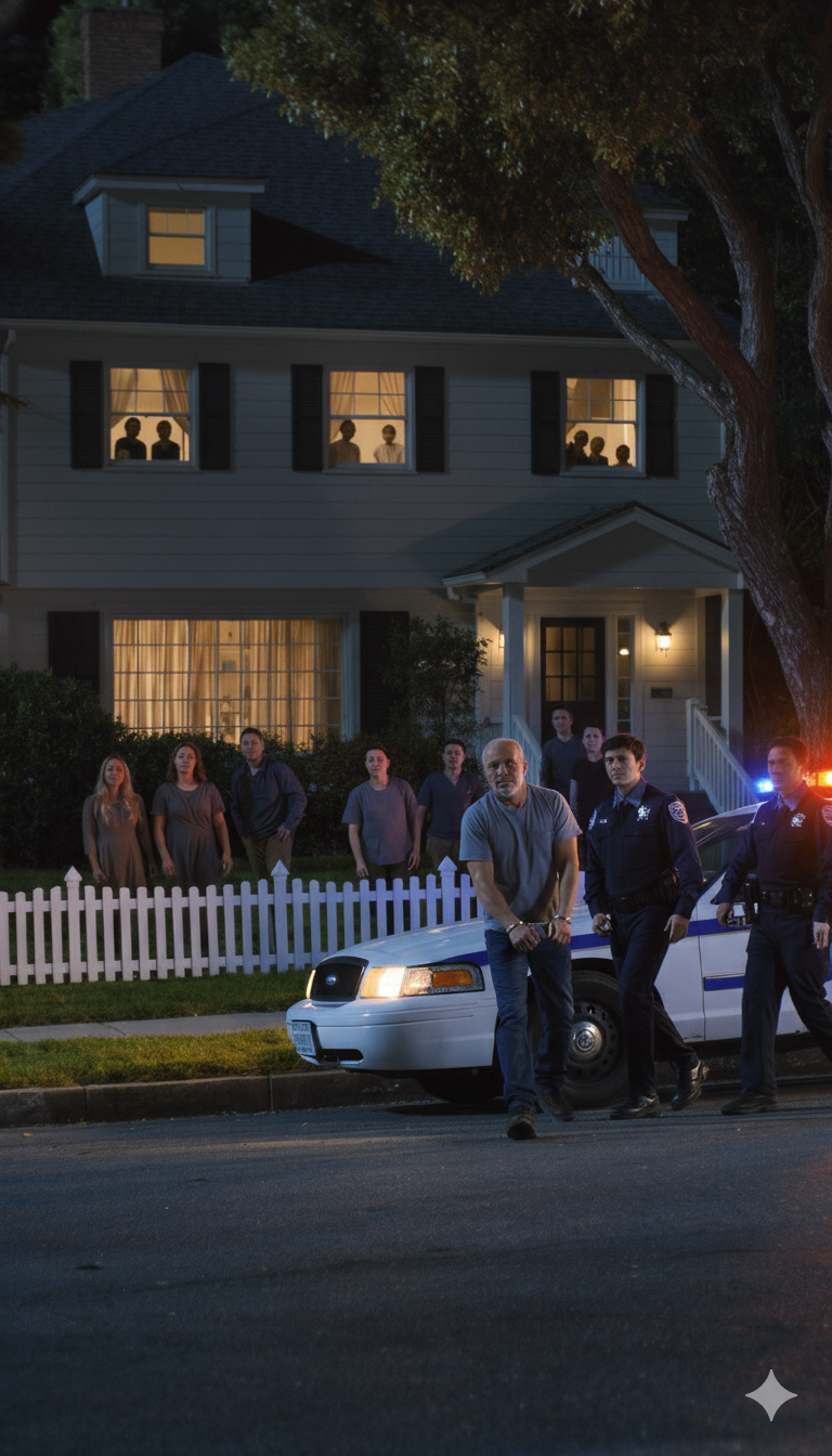 Jedne tihe jesenske noći, mir Maple ulica narušen je. Crvena i plava svjetla bljesnula su, sirene su zavijale, a policijski automobili preplavili su urednu kuću gospodina Harrisa. Susjedi su provirivali kroz zavjese, vilice su im padale dok su ga policajci izvodili u lisicama.
