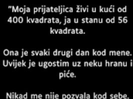 “Moja prijateljica živi u kući od 400 kvadrata, ja u stanu od 56 kvadrata. Ona je svaki drugi dan kod mene….