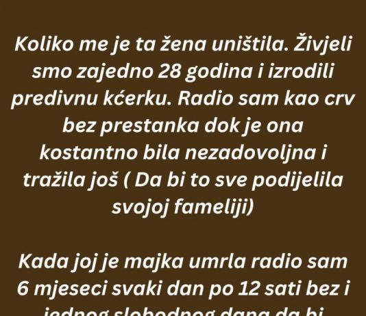 “K0liko me je ta žena uništila. Živjeli smo zajedno 28 godina i izrodili predivnu kćerku…”