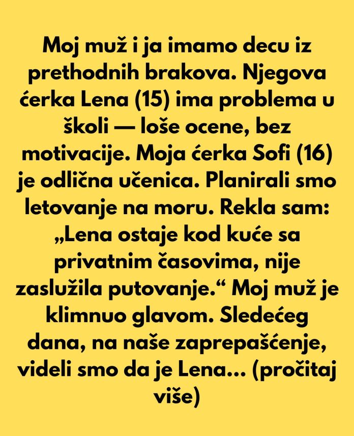 Kako su nastale tenzije? Lena je zbog loših ocjena, nemotivisanosti i problema u učenju bila na meti kritika. Iako je Ana kao roditelj uložila puno truda da pomogne Leni, uključujući privatnog tutora i pružanje podrške, to nije donelo željeni rezultat. Početkom leta, kada su se planirali porodični odmori, Ana je donela tešku odluku. Umesto da Lena ide sa njima na more, morala je ostati kod kuće i koncentrisati se na škole obaveze, što je bio njen poziv na buđenje.