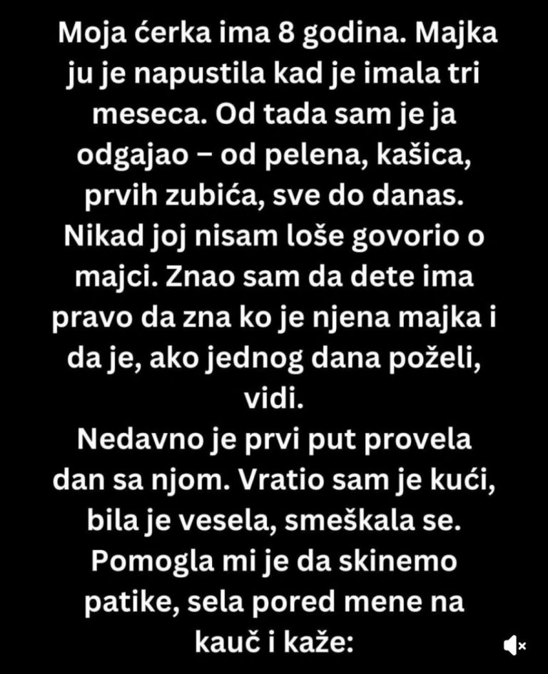 Nikada nije govorio loše o njenoj majci, čak ni u najtežim trenucima, iako je bilo dana kada je bio izuzetno ljut i iscrpljen. Znao je da dijete ima pravo znati tko je njezina majka, iako to nije bilo jednostavno. Nije želio previše komplicirati stvari, ali istovremeno je osjećao odgovornost da mu dijete vjeruje i da bude tu za nju u svim trenucima.