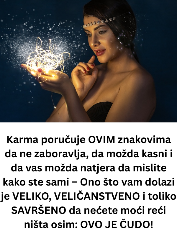 Karma nikada ne kasni, niti zaboravlja. Tiho skuplja sve vaše minute tuge, sate sumnje i godine tišine, i pretvara ih u dar koji ne može biti objašnjen, već samo oseten. I sada ćete znati, bez reči ili znaka, da je došlo vaše čudo