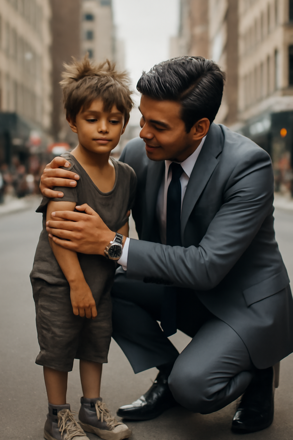 David je na trenutak bio zatečen. Te reči su ga pogodile jače od bilo kog poslovnog udarca. U tom trenutku, znao je da ovo neće biti samo još jedan susret koji će brzo zaboraviti. Spustio se na kolena, kako bi bio u ravni dečakovih očiju, a njegov dizajnerski kaput je pokupio prašinu i blato. Nije ga bilo briga. “Kako se zoveš?” pitao je. “Leo,” odgovorio je dečak, još uvek oprezan.