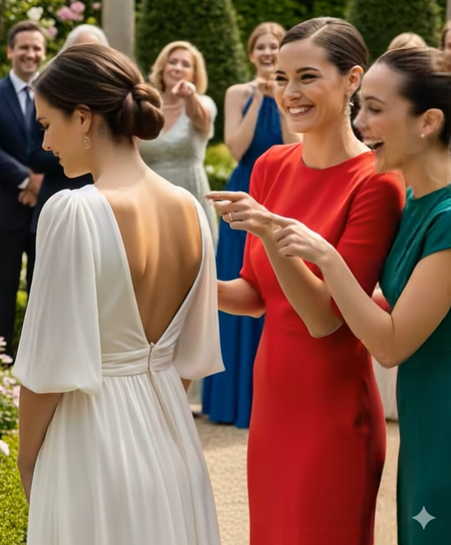 - Glavna junakinja ove priče, koja je odabrala elegantnu haljinu i donijela poklon za domaćicu, došla je na zabavu s namjerom da uživa u društvu, no ono što se kasnije dogodilo bilo je sve samo ne ugodno. Isabelle je brzo primijetila malu pogrešku – zaboravila je izvaditi etiketu sa svoje haljine. I dok su svi još razgovarali, Isabelle nije mogla odoljeti i počela ju je ismijavati, pokušavajući je poniziti pred svima. Naizgled, ona je bila ta koja je imala pobjedu u rukama, jer je mislila da će cijeli događaj biti samo prilika da se nasmije na račun jedne nevine greške.