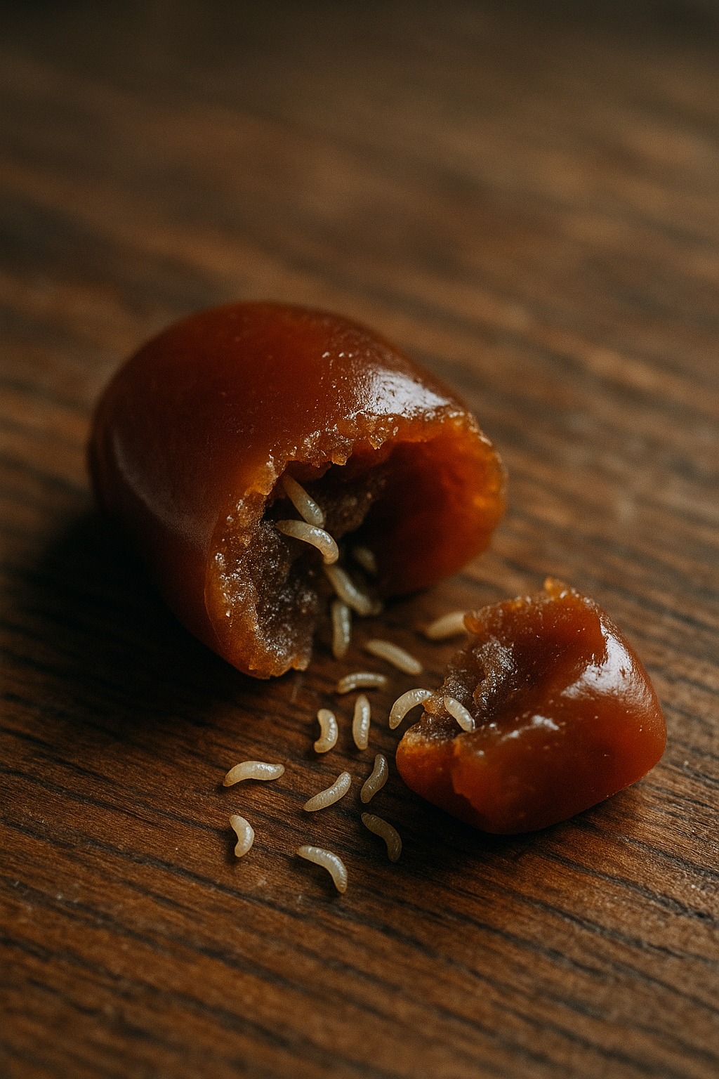 A onda – šok. Onaj trenutak u kojem se običnost rasprsne kao balon. Kada je otvorila karamelu, nešto je izgledalo čudno. Oblik, površina, dojam da se unutra nešto kreće. U prvi mah djelovalo je kao optička varka, igra svjetlosti na omotu. Ali nije bila varka. Ispod glatke površine šećerne mase vidjele su se tanke kretnje, nešto što nije smjelo biti ondje. Sve su se misli u trenu zaledile, a prsa stegla kao da je odjednom nestalo zraka. U tom trenutku srušila se ideja o “običnim” slatkišima. Onaj osjećaj kada shvatiš da si držao nešto što nikada nije smjelo biti blizu hrane.