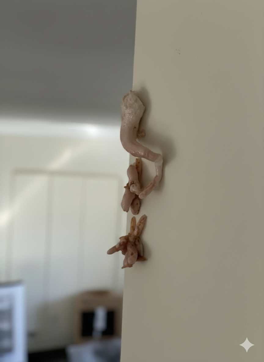 Sve je počelo najobičnijeg jutra. Kuhinja je bila u tišini, voda za kavu se grijala, a ja još uvijek umorna i razbarušena. I tada sam, u kutu oka, primijetila nešto što nije bilo dio jučerašnje slike. Na spoju zida i ormarića stajala je mala, suha grudica, blijedoružičasta i tiha kao da se uporno trudi da prođe neprimijećeno. Nije bila ljepljiva, nije curila, nije čak imala ni miris — ali izgledala je kao uljez.