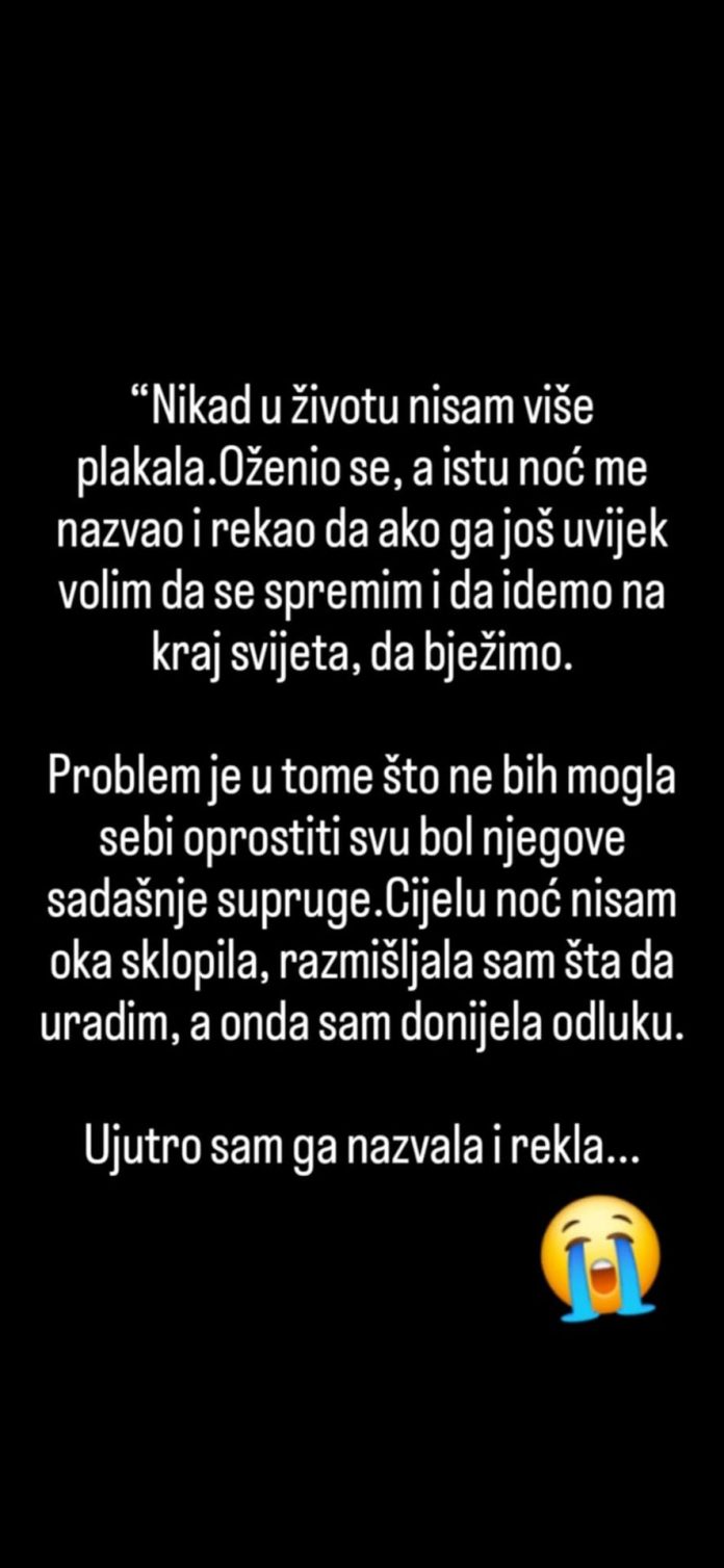 Kada je svanulo jutro, skupila je hrabrost koju prethodnih godina nije imala. Okrenula je njegov broj, srce joj je udaralo kao da će izletjeti iz grudi, ali riječi su same pronašle put. Rekla mu je sve – jednostavno, jasno i bolno iskreno. Priznala je da ga voli kao nikoga u životu, ali i da bi, da ju je on makar malo volio, nikada ne bi napravio ono što je juče učinio. Nije željela biti opcija, rezervni plan, tajna priča koja se skriva iza zatvorenih vrata.