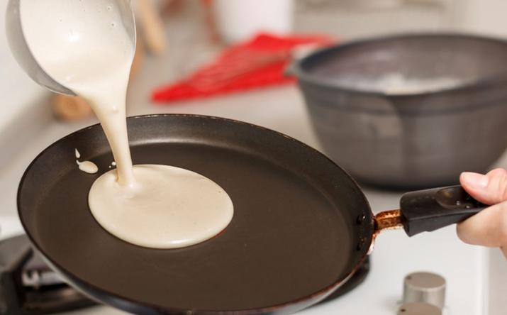 Za pečenje palačinki najprikladnija je tiganj s teflonskom podlogom, jer omogućava pečenje s minimalno ulja i sprečava lijepljenje smjese. Na zagrijan tiganj stavite par kapi ulja, pa izlijte količinu smjese dovoljnu da se formira tanak sloj po dnu. Kada se ivice počnu odvajati i površina blago osuši, palačinku okrenite i kratko zapecite i s druge strane. Ponovite postupak, a prije svake palačinke dodajte par kapi ulja.