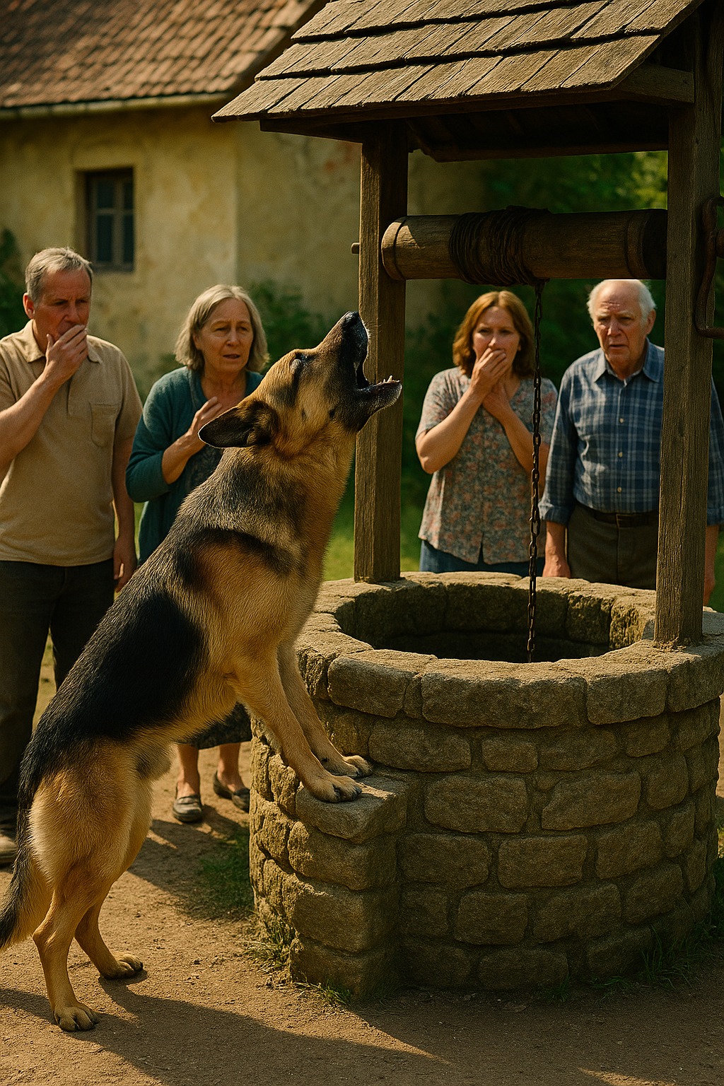 No kako su dani prolazili, bilo je jasno da prisutnost psa nije bila slučajna. On nije odlazio. Danju i noću čuvao je bunar, sjedajući tik uz rub, kao da nešto očekuje. Povremeno bi podignuo glavu prema nebu i pustio dugo, tužno zavijanje koje je odzvanjalo cijelim krajem. Čak su i oni ljudi koji su se smatrali ravnodušnima počeli osjećati nelagodu pri svakom novom glasu. U psećim očima nije bilo prijetnje, samo očaj i neka tiha, ali snažna poruka koju nitko isprva nije znao protumačiti.