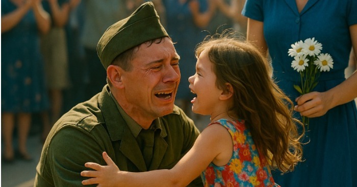 Njegova kći se ukočila. Gledala je u njega kao u čudo koje se boji dotaknuti. Sekunda je trajala kao godina. A onda — neočekivani, snažni plamen. Potrčala je prema njemu svom snagom svojih malih nogu. On je pao na koljena, otvorio ruke, i samo uspio prošaptati: “Moja djevojčica…” Ona mu se bacila oko vrata kao da ga nikada više neće pustiti.