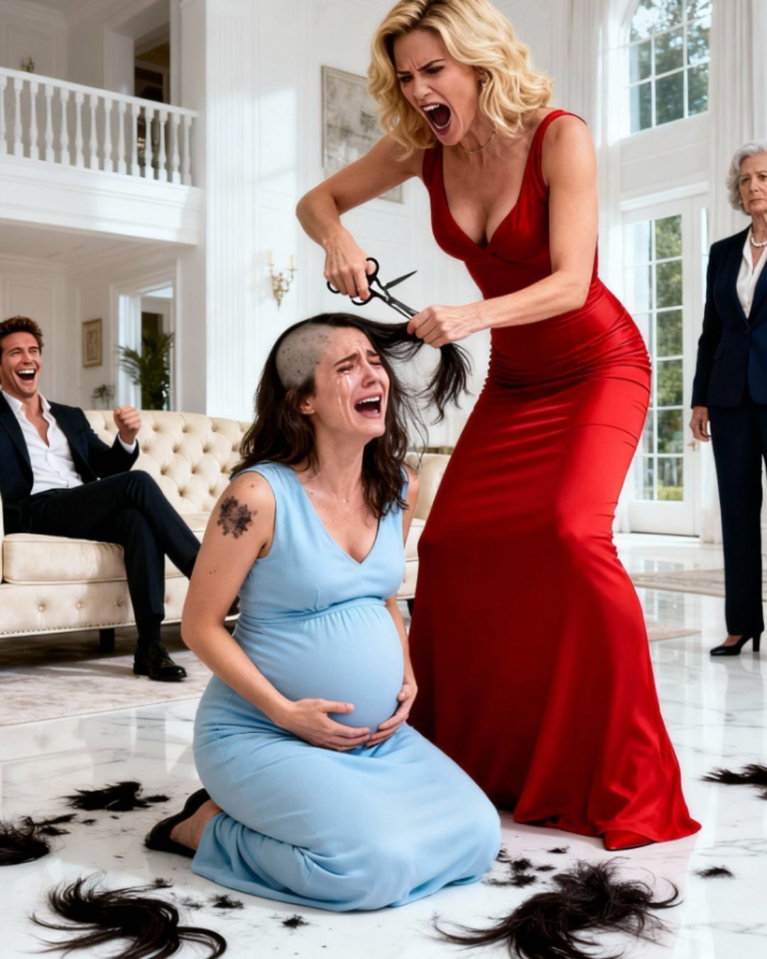 Kada je ugledala sina Danijela, njegovu ljubavnicu Klaru i njegovu trudnu suprugu Marijanu, srce joj se slomilo. Pred njom se odvijao prizor sirove okrutnosti. Marijana je sjedila na stolici, rukama štiteći stomak, blijeda i prestravljena. Suze su joj tiho tekle niz lice, dok je iza nje stajala Klara s makazama u rukama. Sa strane je stajao Danijel, posmatrajući sve bez trunke kajanja.