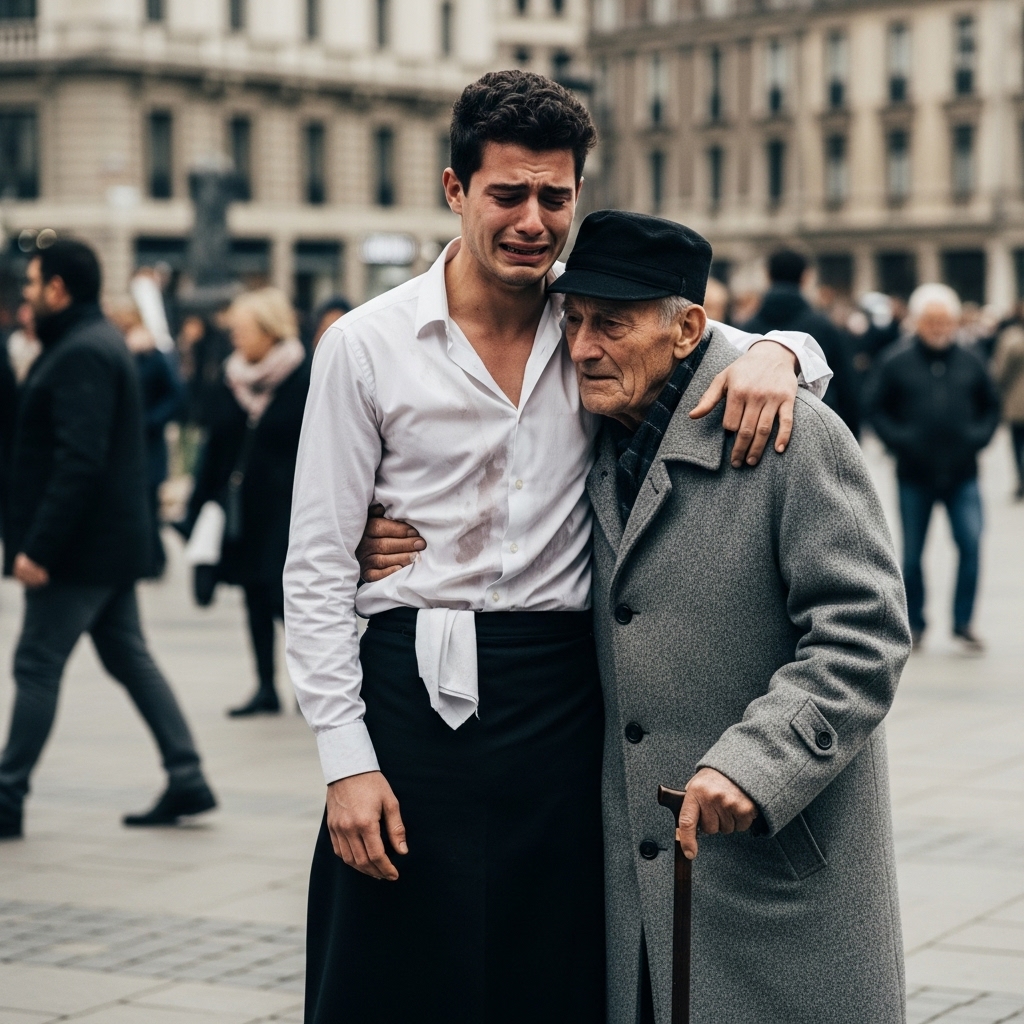 Mladi konobar, Matej, bio je suočen s teškom situacijom. Gazda mu je naredio da izbaci starca jer zauzima stol u vrijeme kada je restoran pun. Matej je znao da mu posao visi o koncu i da mora donijeti tešku odluku. Iako je osjećao simpatiju prema starcu, gazdin pritisak je bio nepodnošljiv. Onda je, po naredbi gazde, prišao stolu, iako mu srce nije bilo spremno na ono što je morao reći.