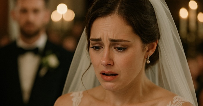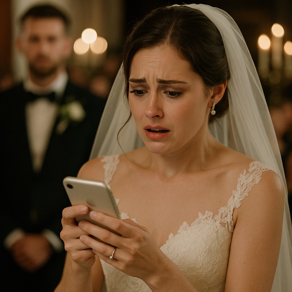 Pogled joj se zamutio, a ruka je lagano posegnula ispod haljine. Izvukla je mali bijeli telefon, tajno sakriven blizu srca. Nitko nije očekivao takav prizor — u trenutku kada ljubav treba zasjati, ona stoji, čita poruku i blijedi kao papir. U tren oka, lice joj se preobrazilo. Osjećaj sreće zamijenio je izraz boli, a oči su joj se napunile suzama.