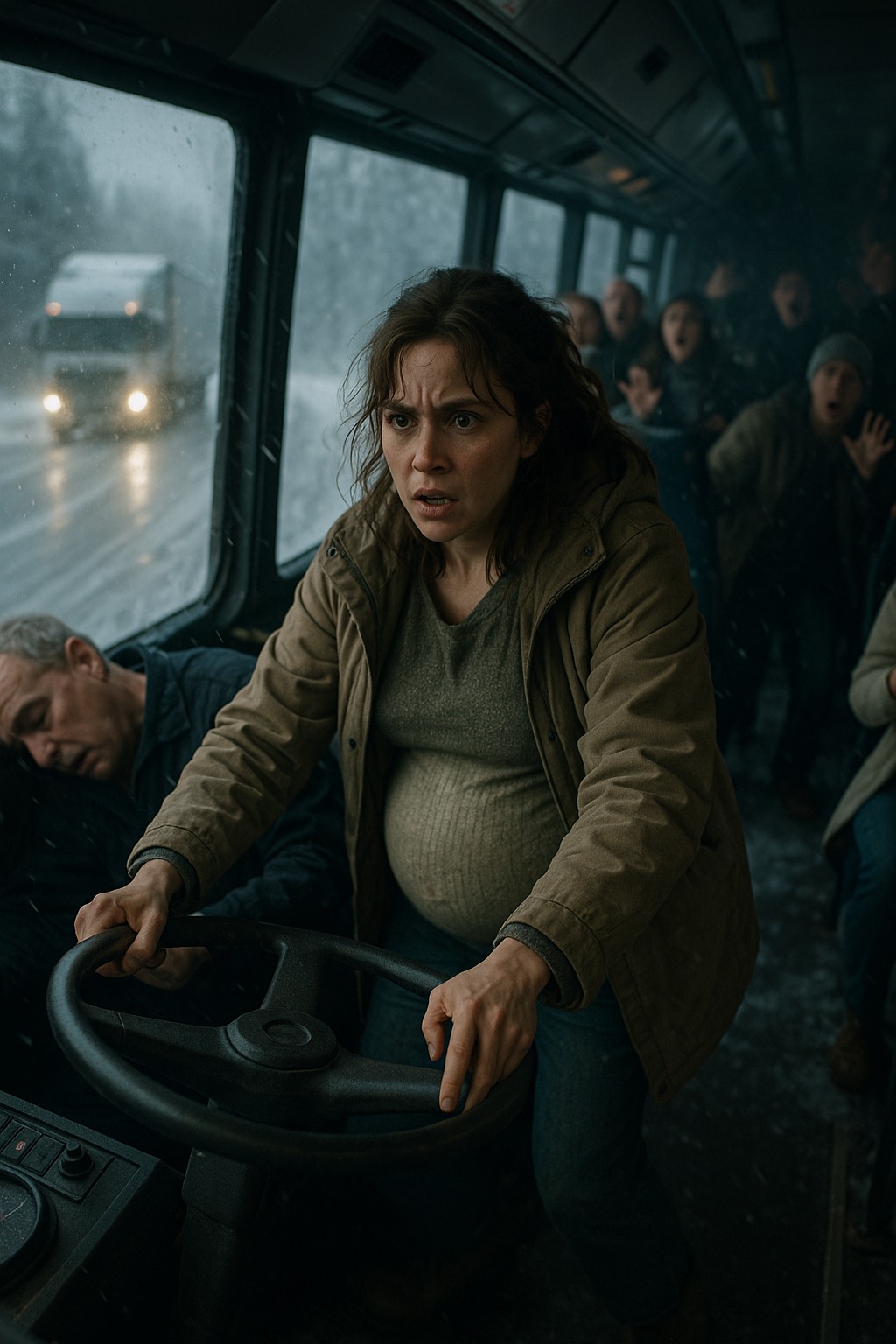- To su bile sekunde koje dijele život od tragedije. Ljudi su vrištali, držali se za sjedala, pokušavali ustati. Lara nije razmišljala – jednostavno je djelovala. Ustala je, prešla korak naprijed, osjetila kako joj trbuh zateže, ali nije stala. Uhvatila je volan, hladan i težak, i povukla ga udesno svom snagom koju je imala. Autobus je proklizao, ali se vratio na cestu.