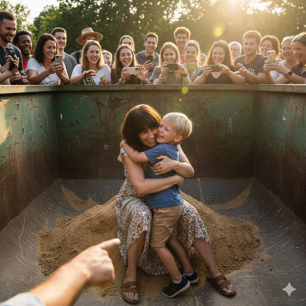 Ono što je usledilo bilo je još gore. Pod izgovorom razgovora, roditelji su je odveli iza parka. Tamo su stajali kontejneri za smeće. Bez trunke dvoumljenja, gurnuli su je unutra, a zatim i njeno dete. U mraku i prljavštini, jedino što je mogla bilo je da ga zagrli i zaštiti. Kada ju je sin tiho pitao da li su oni smeće, u njoj se nešto nepovratno promenilo.